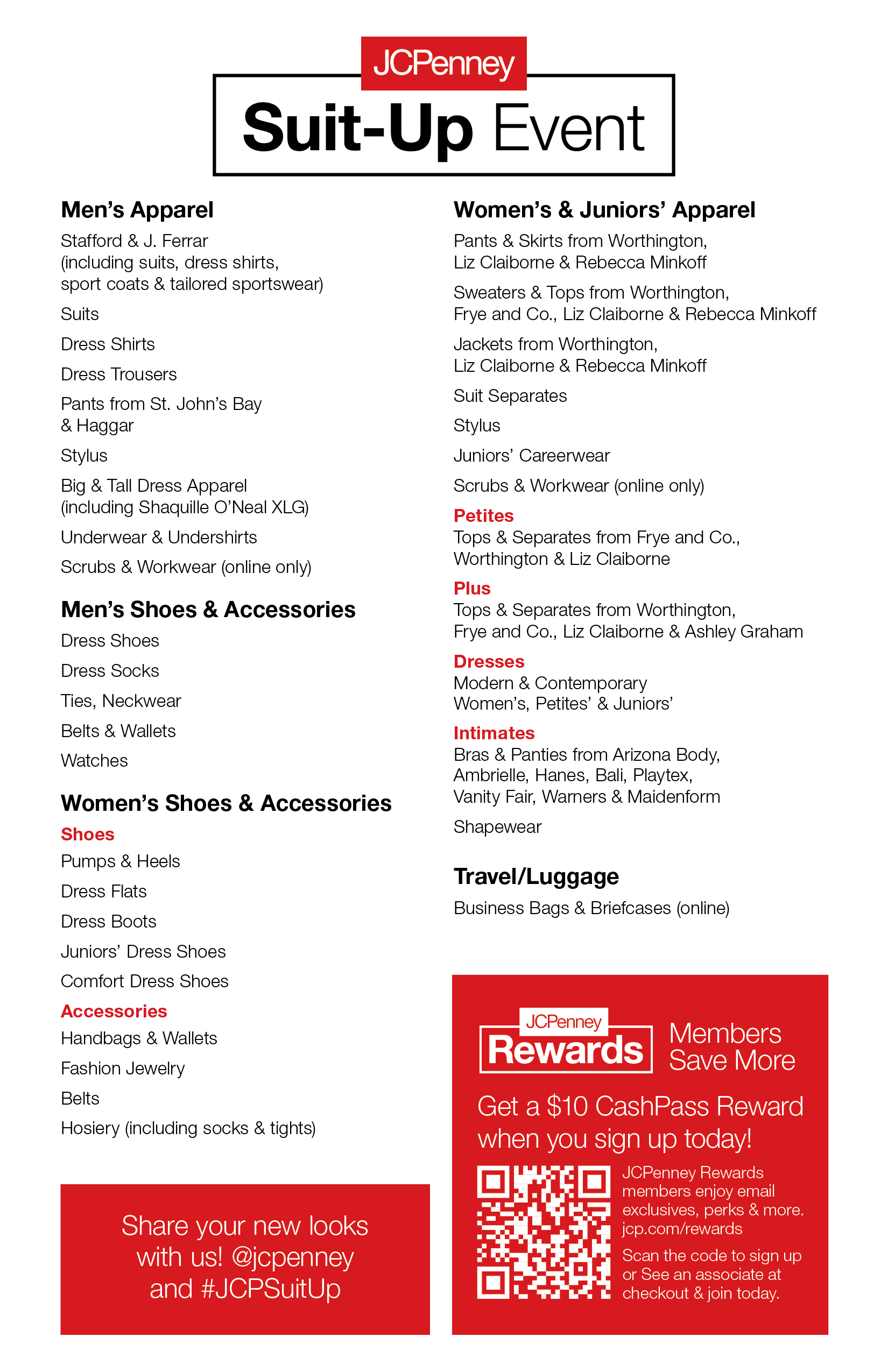 The JCPenney Suit-Up is designed to provide a discount on men's and women's professional attire, accessories, and shoes to ETBU students and alumni both in store and online.